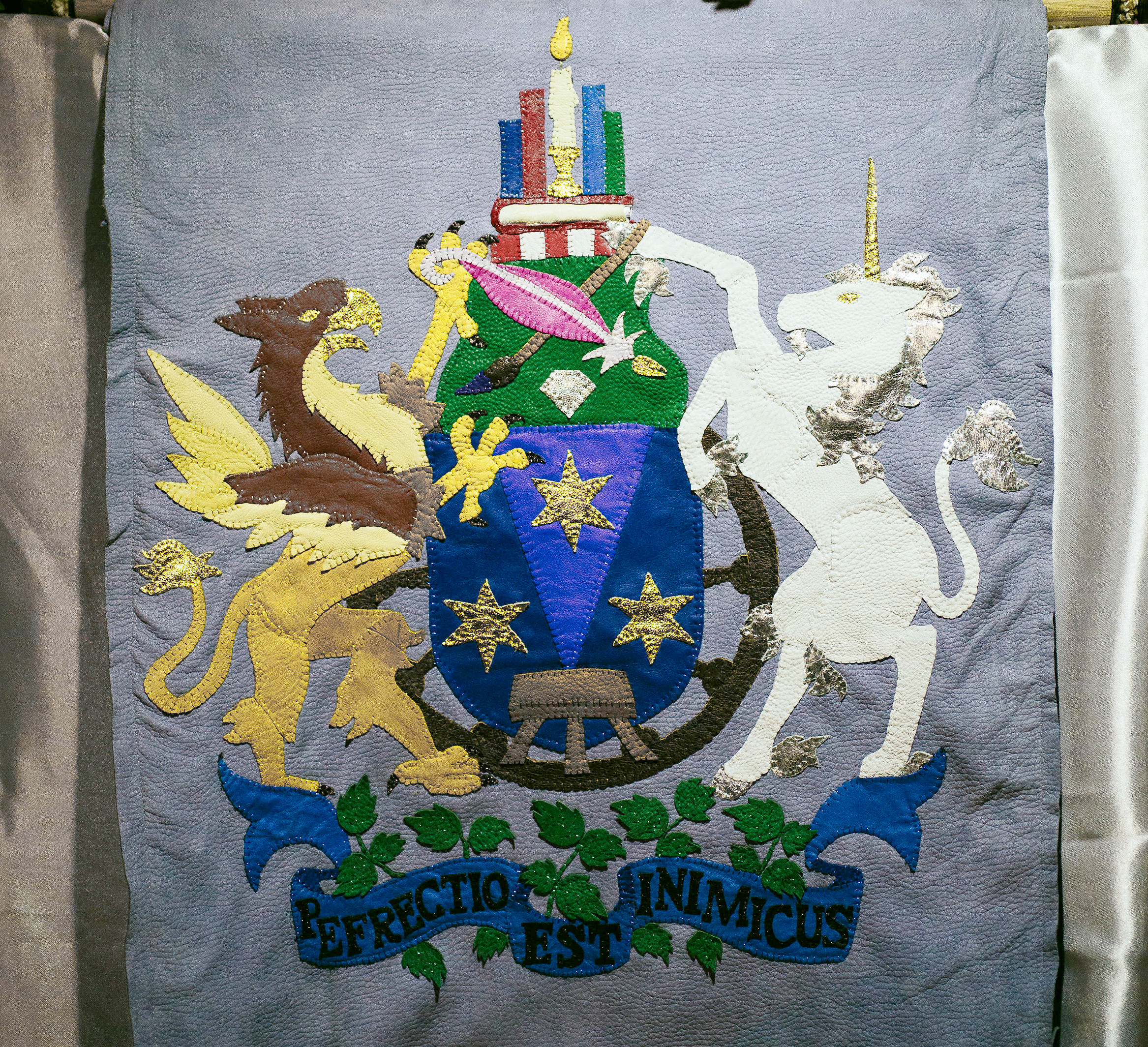 At the wedding reception, a banner displaying the crest was hung at their table. This was hand sewn by the very talented Megan Smithyman. You can see the rest of her work here.