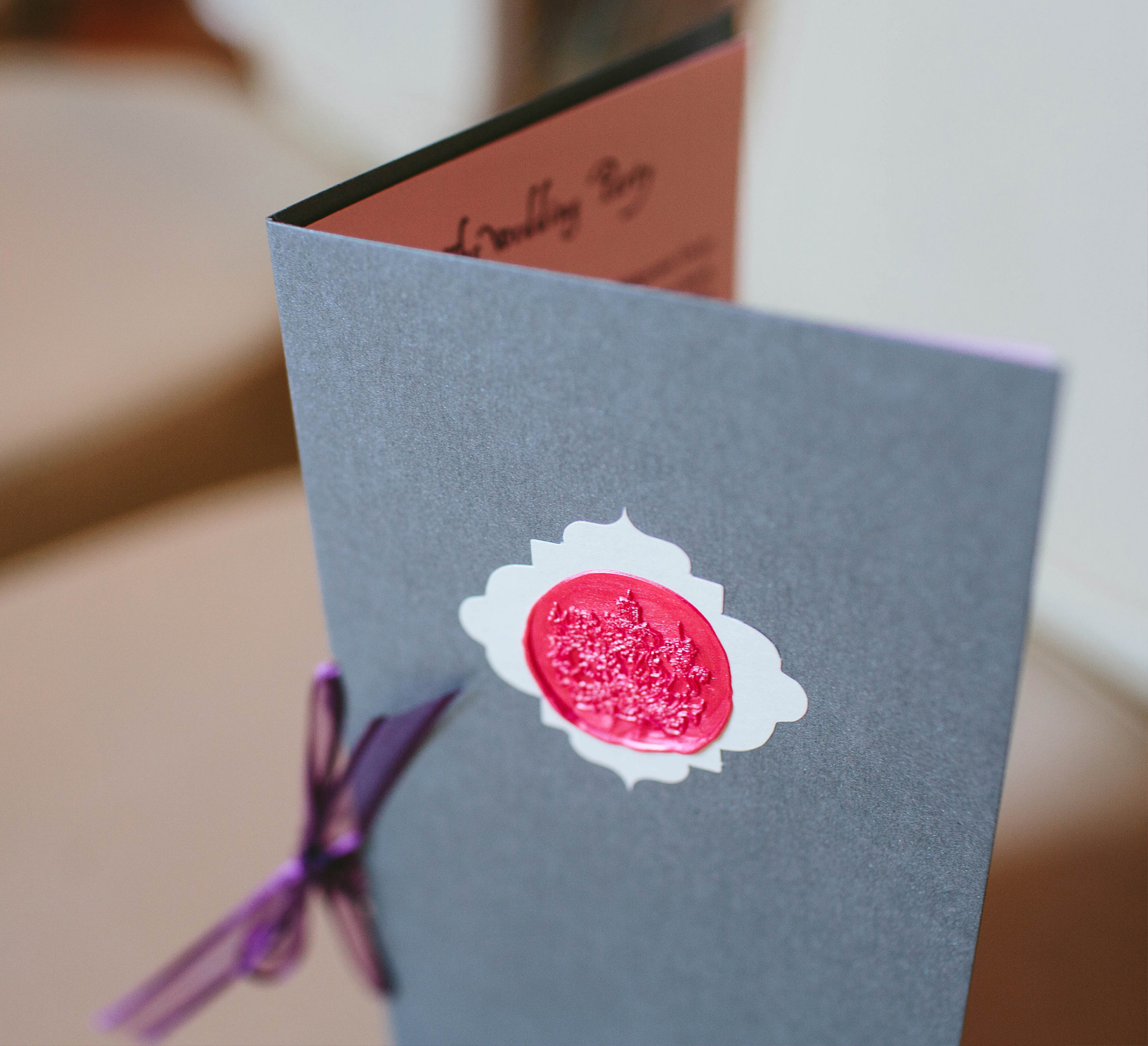 Each one was printed and hand assembled with ribbon, stamped with the family crest, to match the look and feel of the invitation